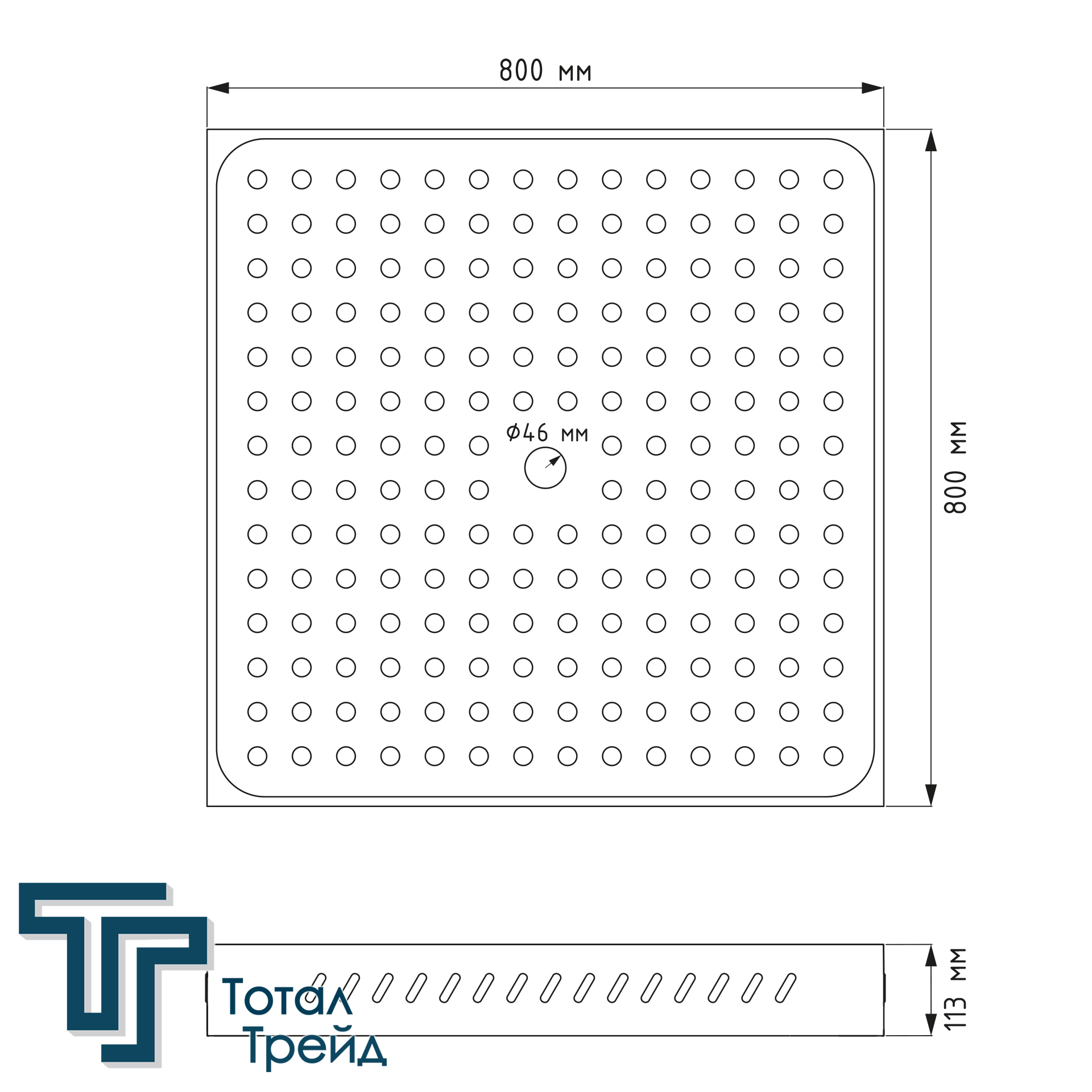 Размеры изделия (Ш×Г×В): 800х800х113 мм;