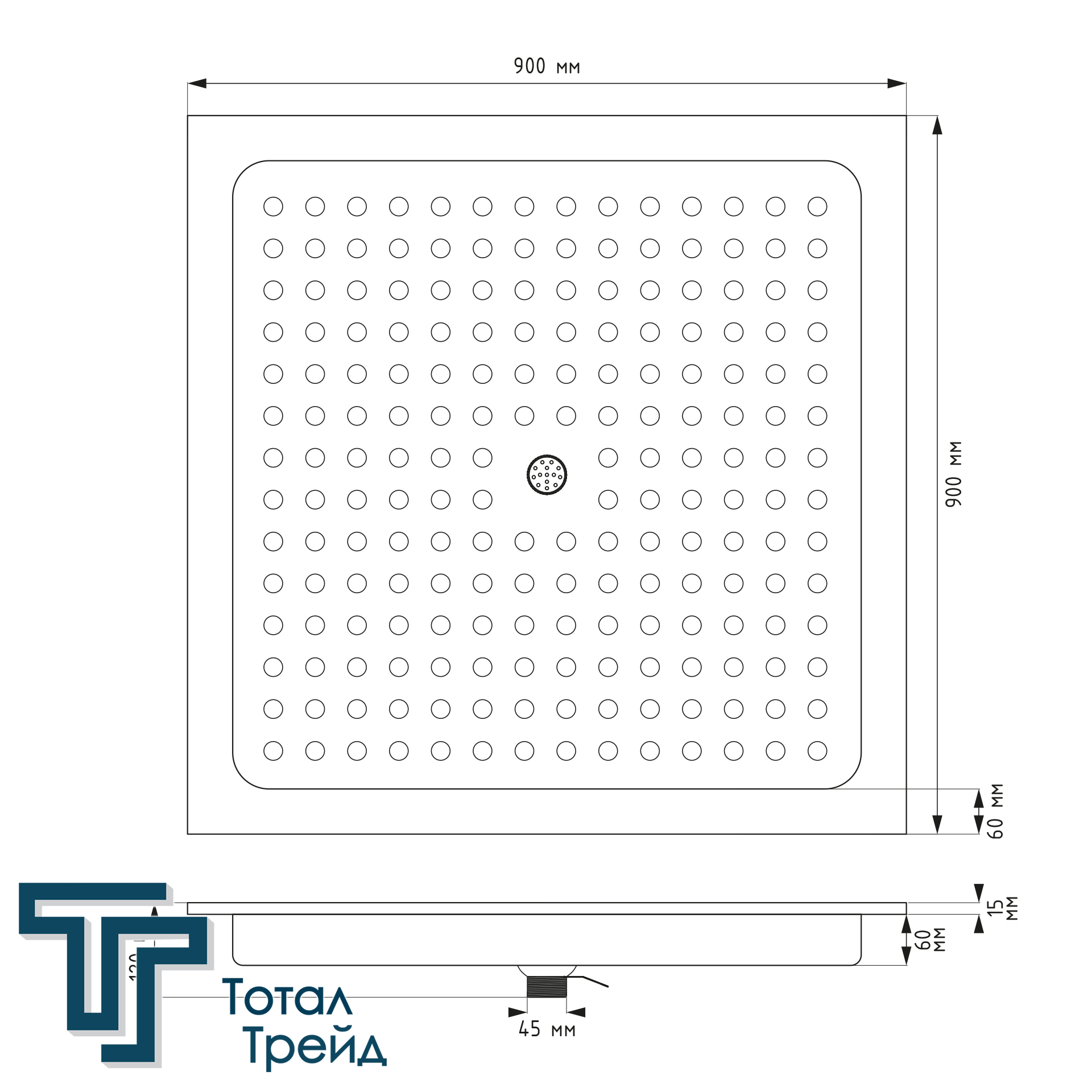 Размеры изделия (Ш×Г×В): 900х900х120 мм;